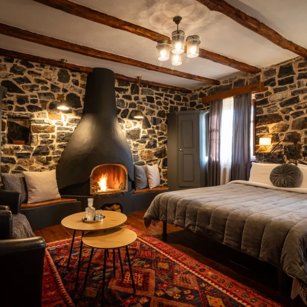 Πέτρα, ξύλο και λεπτομέρειες πολυτέλειας δημιουργούν τη ζεστασιά που αξίζετε για μια αξέχαστη διαμονή.