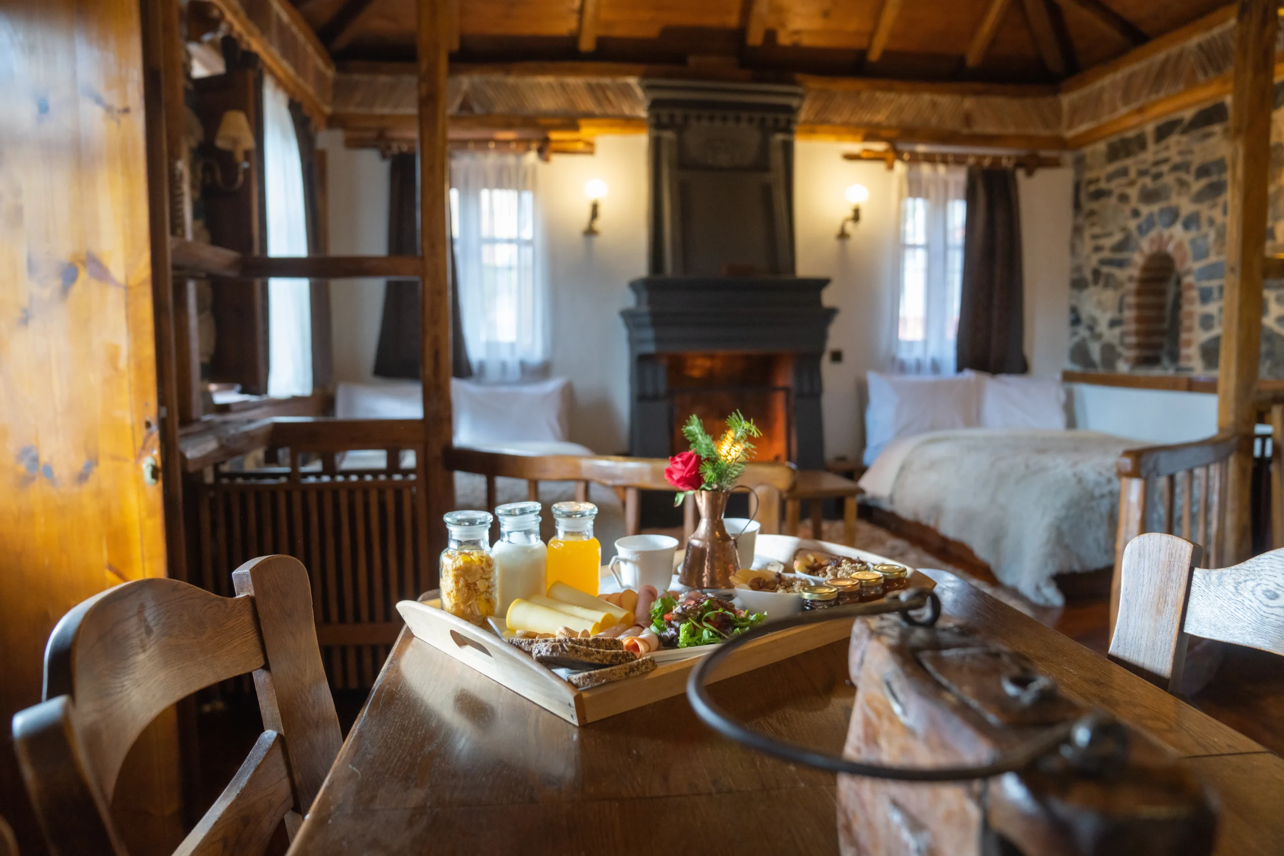 Η deluxe suite είναι η ιδανική πρόταση για οικογένειες που αναζητούν άνεση, λειτουργικότητα και παραδοσιακή ατμόσφαιρα στο πιο γοητευτικό ορεινό σκηνικό. Απλωμένη σε 55 τ.μ., αποτελεί ένα πραγματικό “καταφύγιο φιλοξενίας”, που συνδυάζει τον αυθεντικό χαρακτήρα της πέτρας και του ξύλου με όλες τις σύγχρονες ανέσεις.