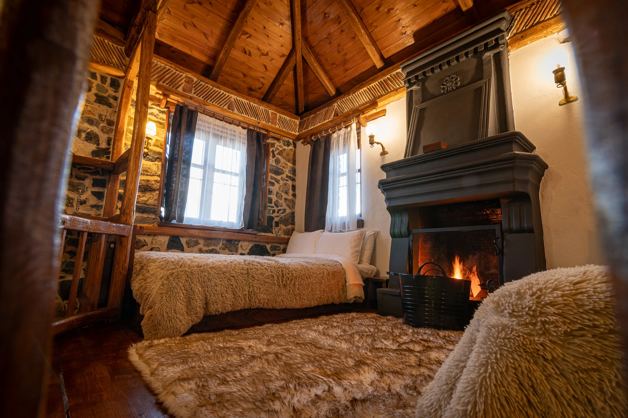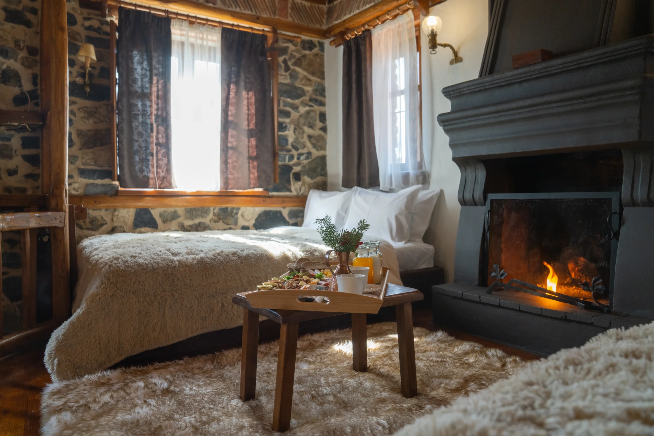 Κάθε κρεβάτι είναι ντυμένο με πολυτελή λευκά είδη από φυσικές πρώτες ύλες, προσφέροντας μία αίσθηση καθαρότητας και δροσιάς, που ολοκληρώνει την εμπειρία ευεξίας. Είτε ξυπνάτε με τον ήλιο να μπαίνει από τις κουρτίνες, είτε απολαμβάνετε έναν χαλαρωτικό ύπνο μετά από μια μέρα στο βουνο, η αίσθηση είναι πάντα η ίδια: απόλυτη άνεση, ηρεμία και φροντίδα.